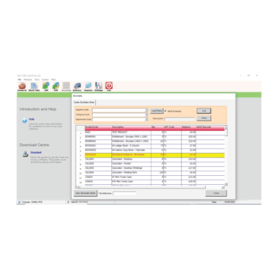 The windows based interface software displays all product codes, descriptions, and Sales prices along with the current quantity in stock. This information can be sorted in ascending or descending order.